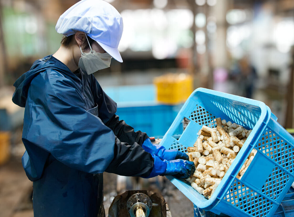 ごぼうの加工ラインを担当しています。 機械を使って、六つ割や四つ割、ダイスカット、斜めカットなど、指定の形にごぼうをカットしていきます。 その日の注文内容によって使う機械やカット方法も違うので、朝はまず指示書を見て確認することから始まります。素材の状態を見て機械の調整をするなど、意外と細かな判断が必要です。 最初は難しそうに感じましたが、先輩が丁寧に教えてくれたので、少しずつ自信を持って作業できるようになりました。